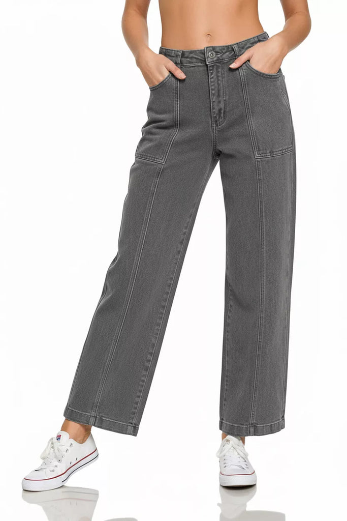 These Straight Leg Utility Pocket Jeans are a practical and stylish addition to any wardrobe. The straight leg design offers a timeless and flattering silhouette that can be easily dressed up or down. The utility pockets add a functional and trendy element to the jeans, perfect for storing your essentials on the go. Made from durable denim material, these jeans are both comfortable and long-lasting. Elevate your everyday style with these versatile and chic utility pocket jeans today!