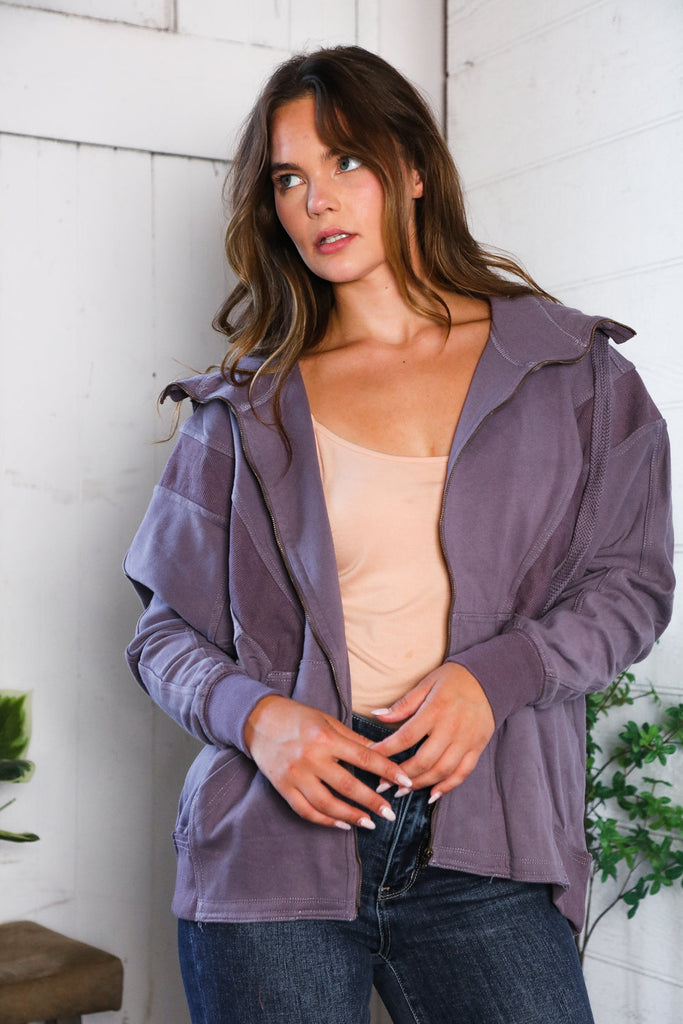 A Cozy Wanderer Dusty Velvet Zip Up Jacket